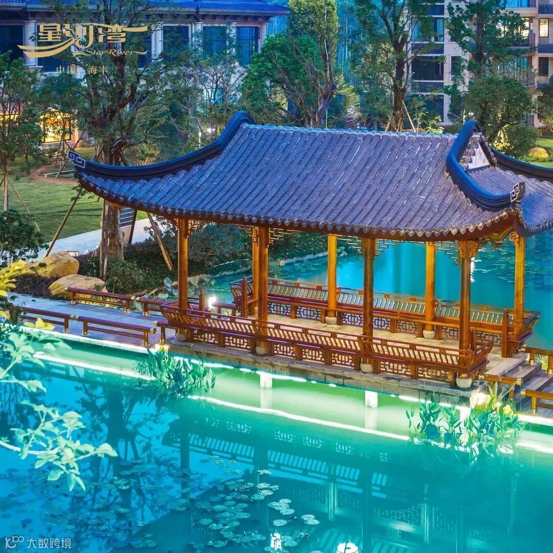 海丰星河湾以苏州园林的造园技法,结合当地岭南特色,打造独具东方意蕴的园林。