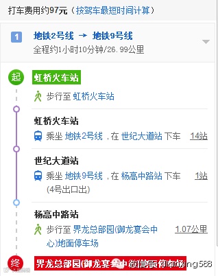 虹桥火车站出发: