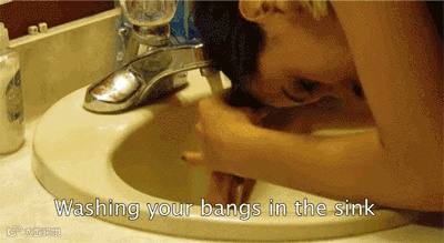 6. 刘海顶在你脸上最爱出油的位置,所以洗它的次数要远远多于洗头……你得学会如何在洗脸池里搞定它们。