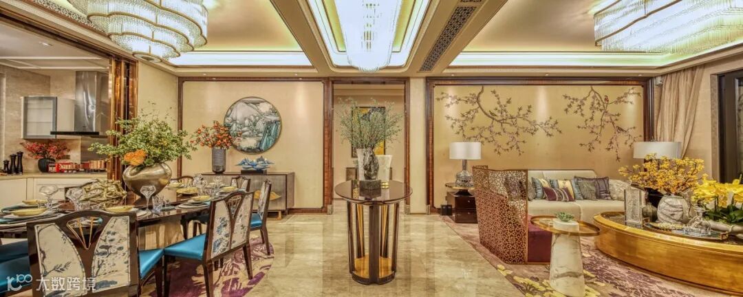 在室内设计上,朗园采用星中式设计理念,对黑尼斯木、玫瑰金镜钢、劳伦白金石等材料进行创意表现,为业主生活增添更多的东方文化色彩。