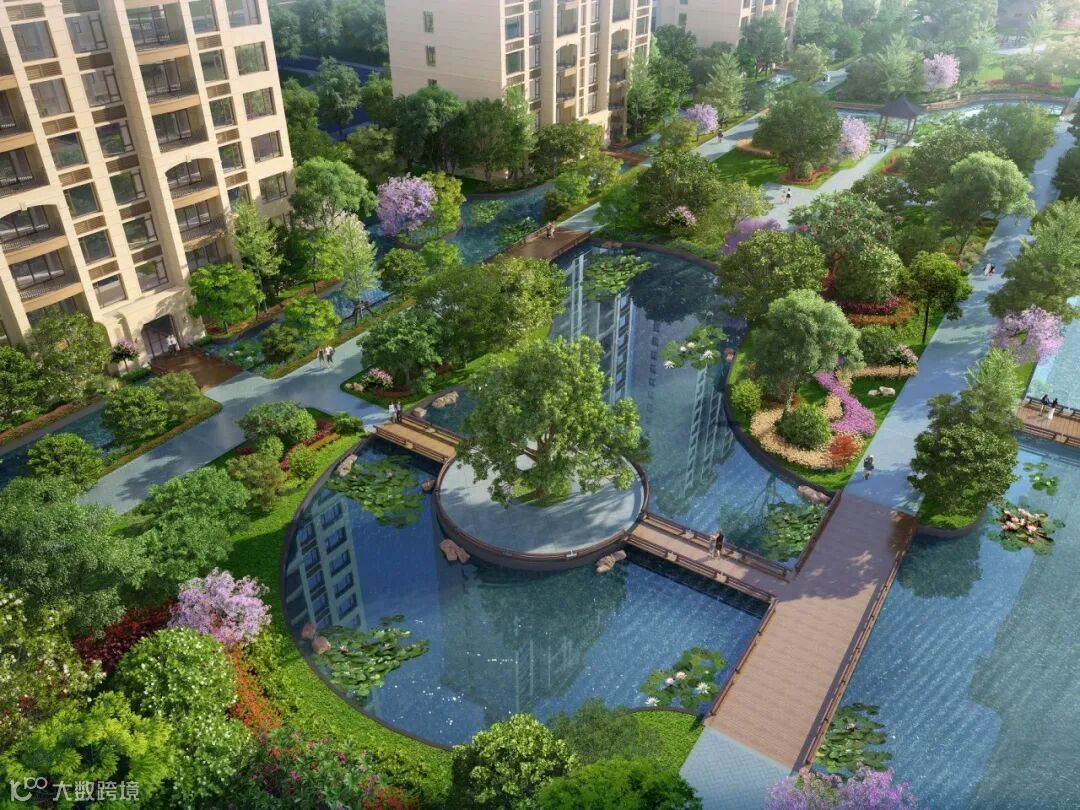 6号园的景观设计非常强调参与性与交互性,拥有更大的水景面积。小桥栈道,亭台楼榭,犹如一条玉带缠绕在腰间,潺潺流水,流淌着美好而灵动的意蕴,亦可让业主在夏日戏水,感受清凉。