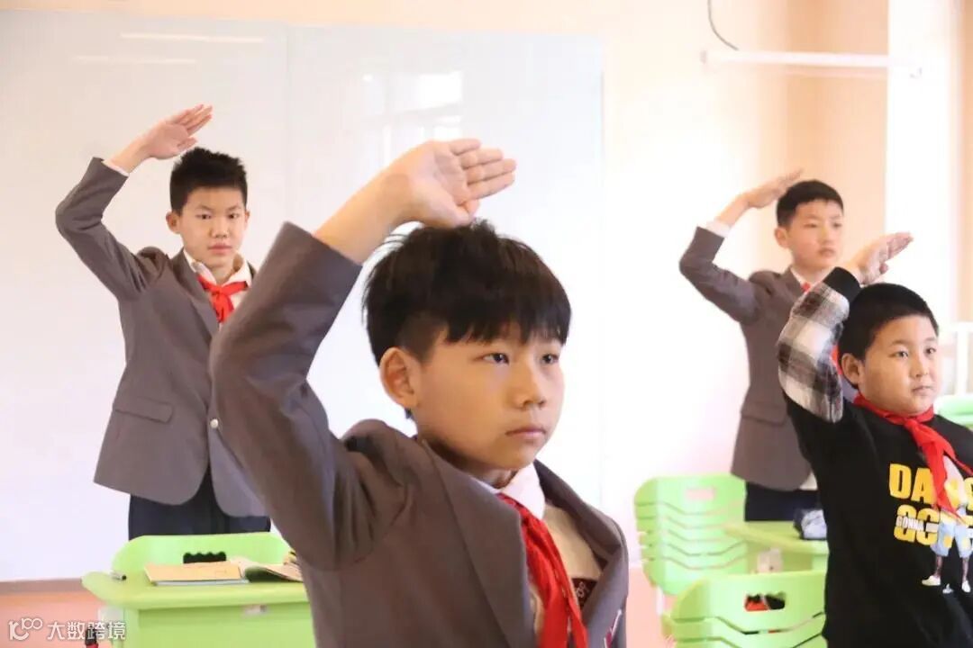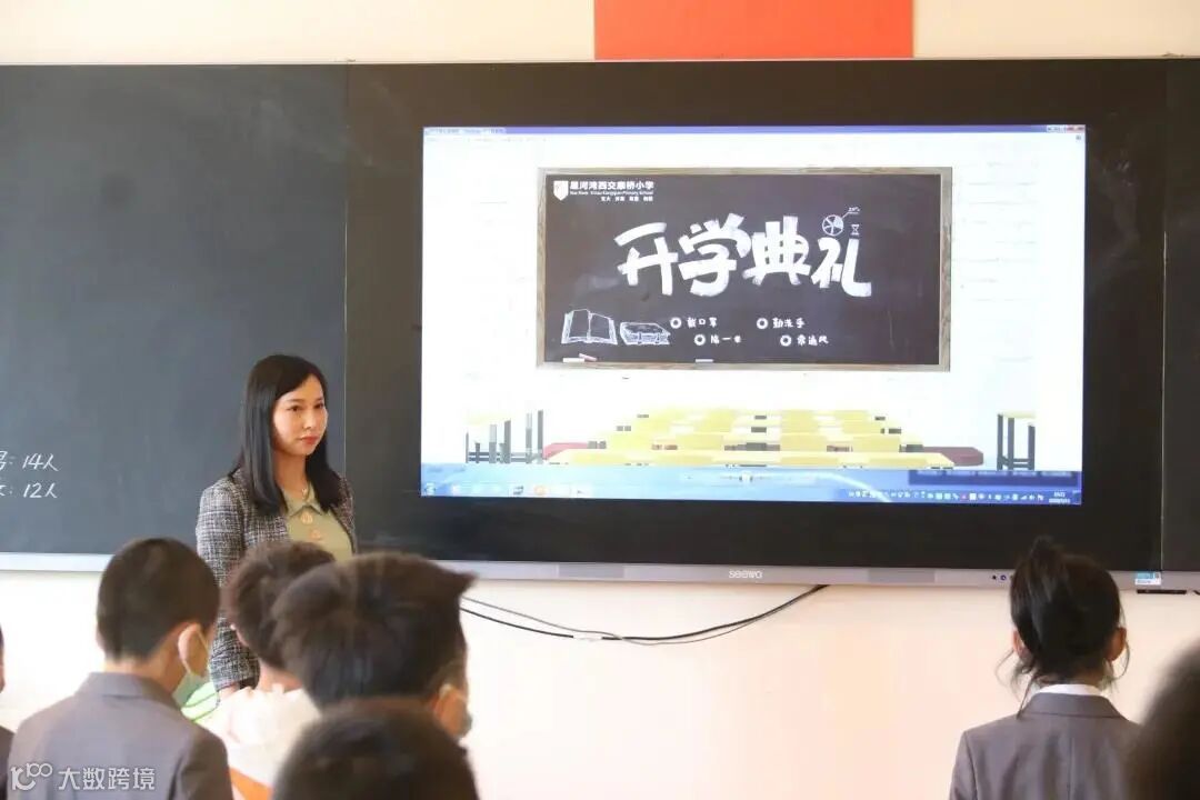 ▲星河湾西交康桥小学教室内举行升旗仪式