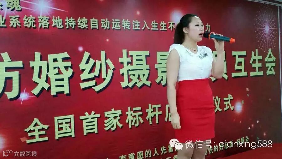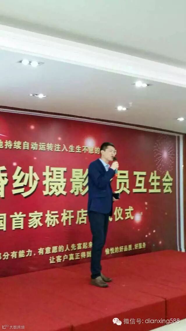 下图为:点醒商学院耿院长为喜多坊婚纱主持