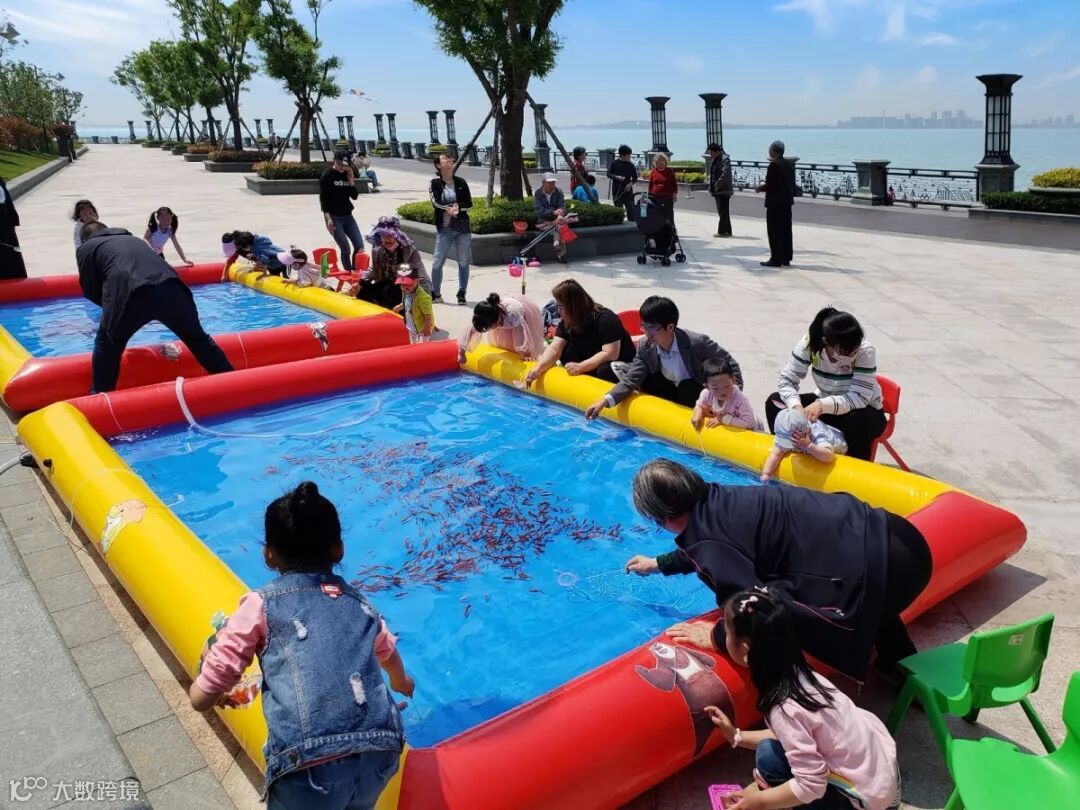 青岛星河湾在滨海木栈道开展了大型儿童游乐设施体验活动,业主与孩子们欢聚一堂。