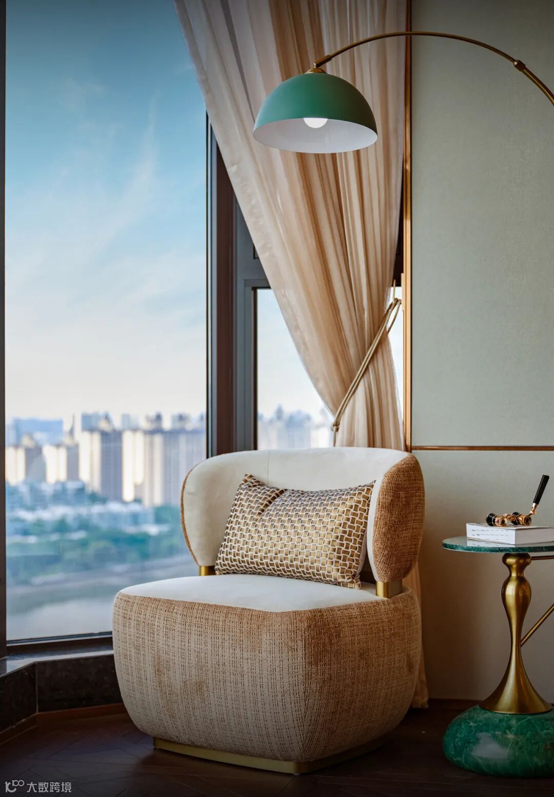 主套房带独立观景露台,晨起瑜伽时江风绕肩,夜读时可枕着江浪入眠;长辈房设南向飘窗,让父母在暖阳里打理绿植,看孙辈在厅堂奔跑;每间套房皆以“隐形的尊崇”划分边界,却又通过公共连廊与共享空间温柔相连——这不是空间的割裂,而是对个体尊严的极致守护,每个成员都能找到“被看见”的归属感,让家真正成为血脉相连的温暖港湾。