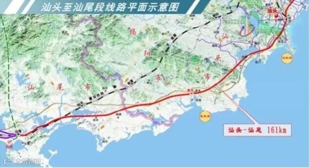 广汕铁路汕头至汕尾段线路平面示意图