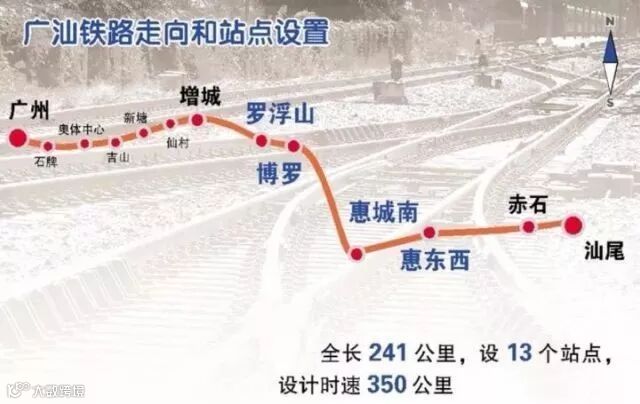 广汕铁路走向和站点设置图