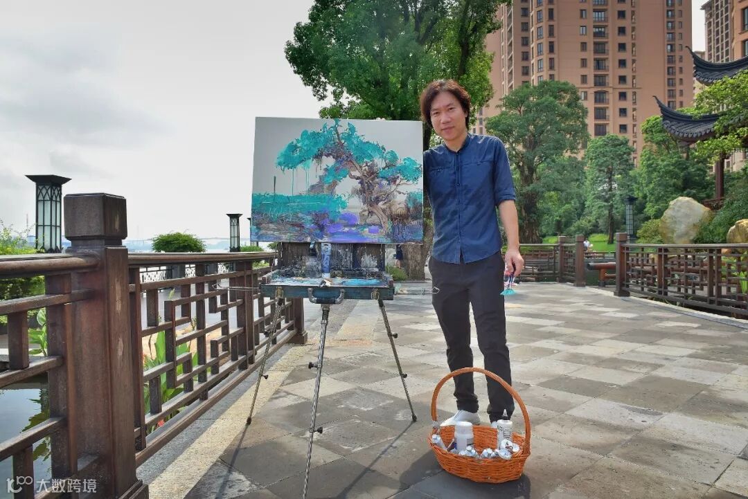莫奈花园以睡莲著称,而星河湾半岛之上,也有让画家们魂牵梦萦的睡莲,亭亭净植,不蔓不枝。半岛之上,上百年的秋枫、古茶梅、古茶树、古香樟、黑松、古龙眼等,开花植物、常青植物、色彩搭配精心考究,这样一座“植物博物馆”自然让擅长画树的周作俊为之倾心,让充满生命张力的枝丫一次次出现在他的画面里。
