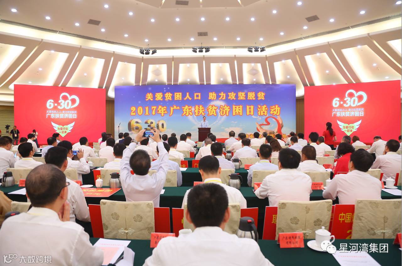 6月30日上午,星河湾集团参加“6.30广东省扶贫济困日”活动,黄文仔董事长在现场举牌捐赠,金额为1.2亿元。同时星河湾荣获“2016年度广东省扶贫济困红棉杯”金杯奖。