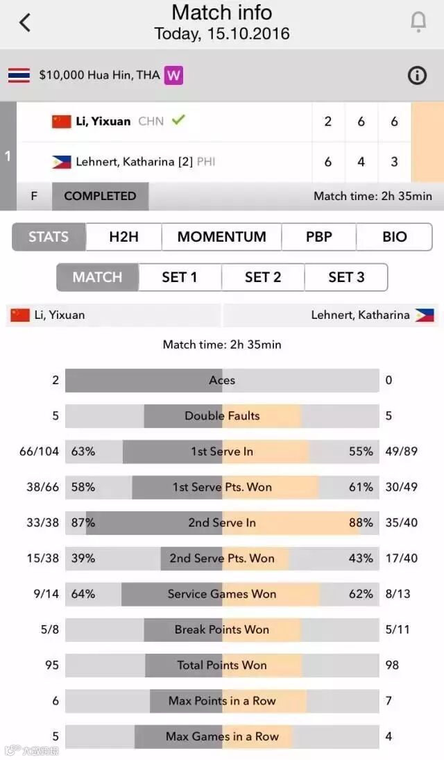10月15日,ITF泰国华欣(10K)站女单比赛现场,星河湾职业网球俱乐部球员李艺璇,击败赛事2号种子菲律宾球员Katharina LEHNERT,获得冠军,三盘比分为 2:6、6:4、 6:3。这也是李艺璇职业生涯的第一座冠军奖杯。
