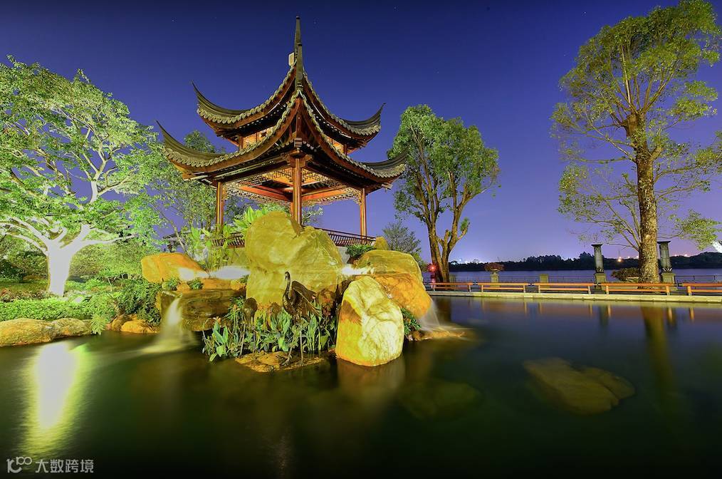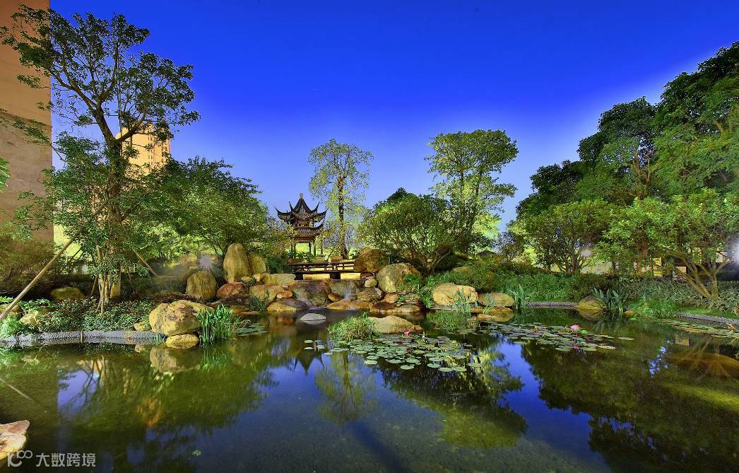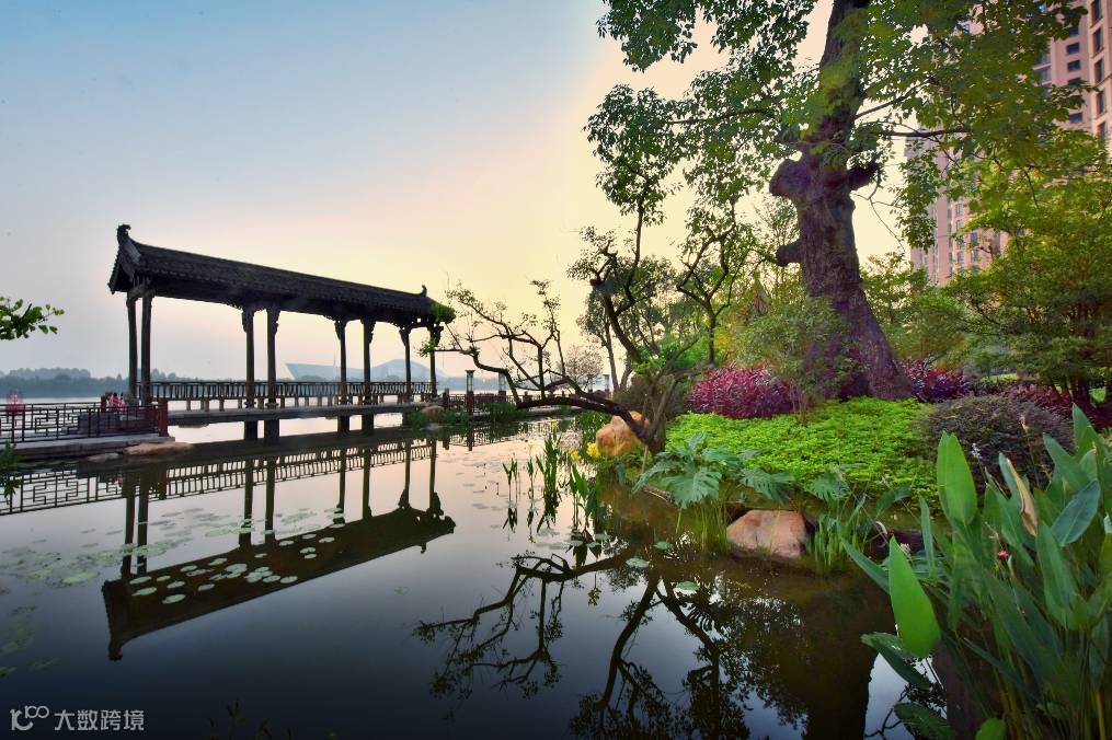 亭台轩榭,散落于绿林湖水之间,风景似画,满满的苏州园林即视感。而为了让代表中国造亭最高造诣的“苏亭”出现在珠江畔,星河湾把最正统的苏州古建筑团队请到了广州,手工造亭。