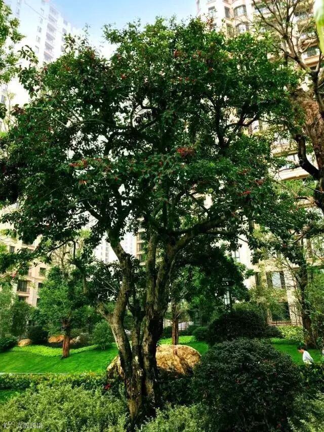 在园子里,上百岁的大树不下50棵。秋枫苍劲,香樟典雅,百年丹桂香溢珠江。两棵百年古木棉,花了三年时间才找到。那棵海红豆也是在测试了日照温度后,才在园中安下了家,还有那香樟王、鸡冠刺桐、荷花玉兰……