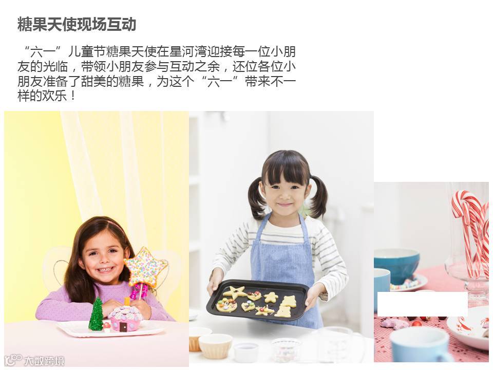 "六一"儿童节当天,糖果天使将在星河湾迎接每一位小朋友的光临,带领小朋友参与互动,并会奉上甜美糖果,为小朋友们带来不一样的"六一"欢乐!