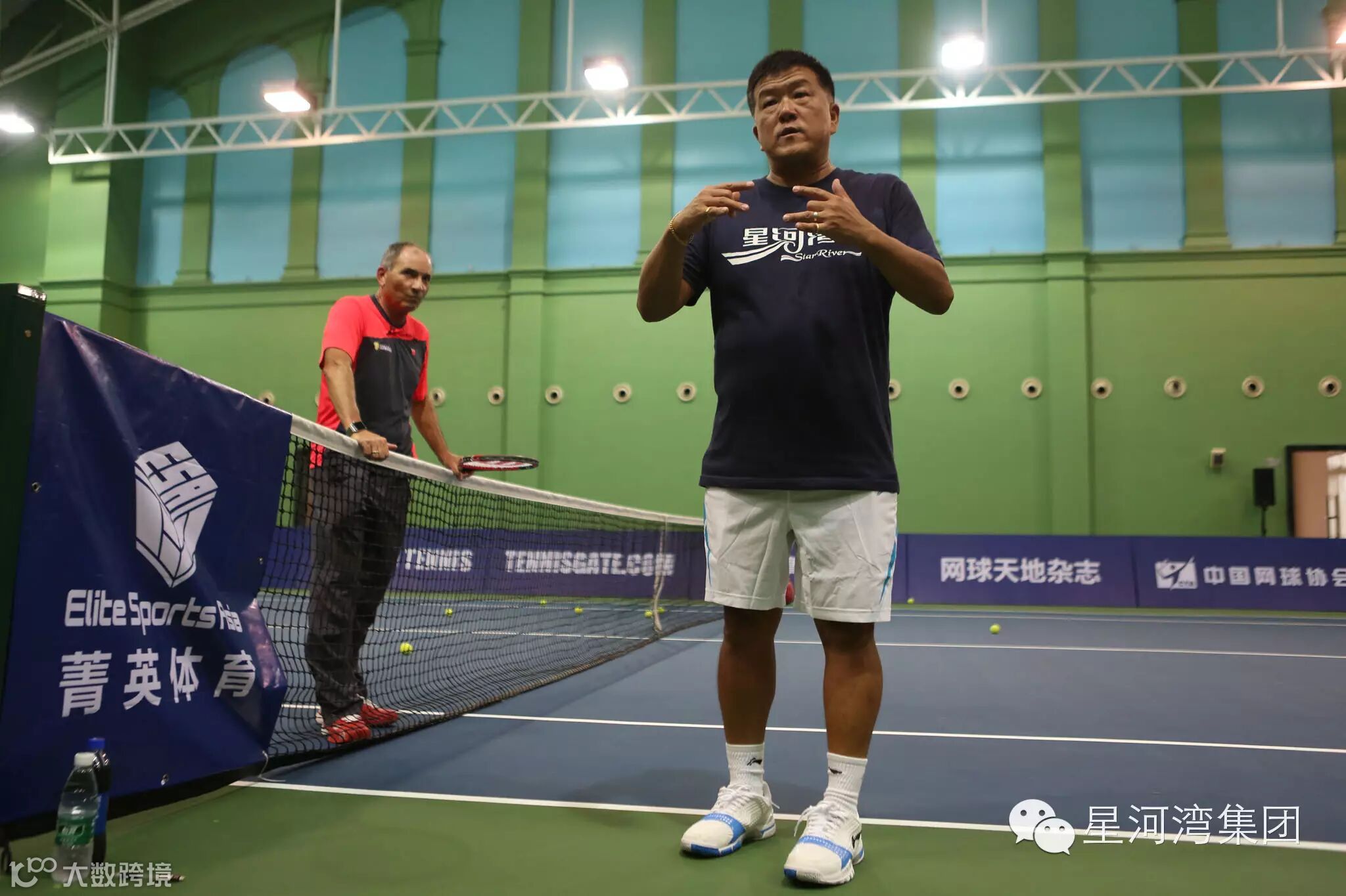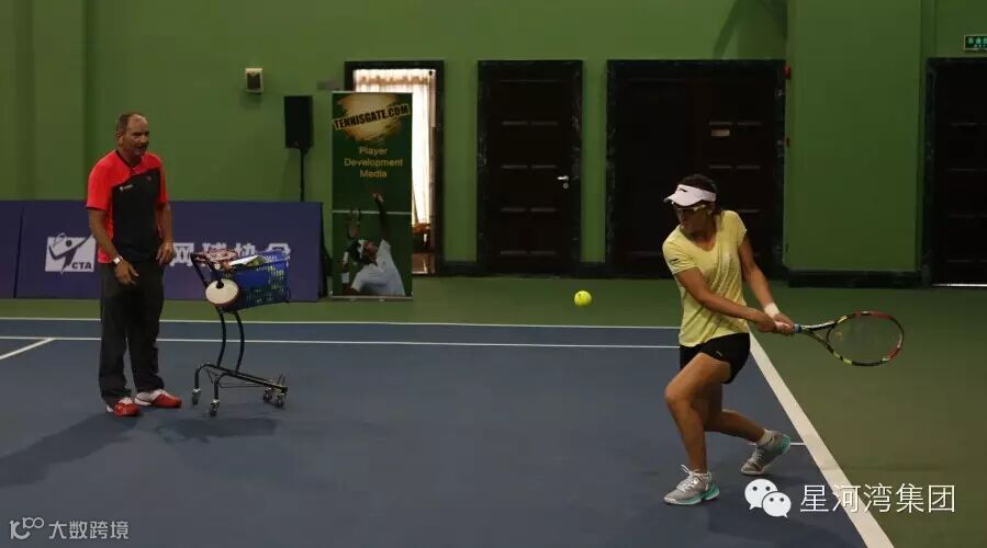 上图的蓝衣教练正是本次培训的主要承办单位之一的星河湾职业网球俱乐部执行长马伟开(Alan Ma)。他分享了星河湾职业网坛团队的实战训练方法,包括步法训练到单个技术环节的训练,俱乐部签约球员,有着“中国小花”之称的郑赛赛和吴君柔现场示范,让参训教练员更加直观的感受最先进的训练方法。
