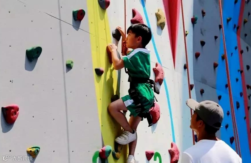 在星执学校,攀岩纳入了体育校本课程。此外,还有大型蹦床、翻滚单车这些在其他学校非常罕见的运动项目也纳入了校本课程。