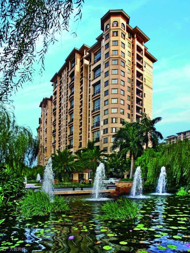 为了让水景呈现出清澈的绿,星河湾对多种水生植物进行深入的科学分析后,引入荷花、睡莲、软骨草、雨伞草、再力草等多种群落水生植物。河道内种植水生植物,以一种自然生长的生态环境,让水系生机勃勃。此类水生植物具有固氮固磷功能,可以净化水质,而花茎叶果又涵养了二栖生物,调节园林内的生态平衡,同时,涌泉叠水的流动又将空气中的养分带给植物,从而增加空气中的湿度,与泳池“护城河”静水动水的滴水声、流动声形成强烈的动静对比,自然生态情景美妙。而清新的园林空气,打造出的自然湿地景观,让建筑、人与自然水乳交融。