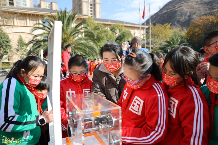 直播活动结束后,孩子们还进行了科学实践课程。现场观摹,动手实践,科学与探索的快乐,太空和宇宙的神秘,吸引每一个孩子的注意力。
