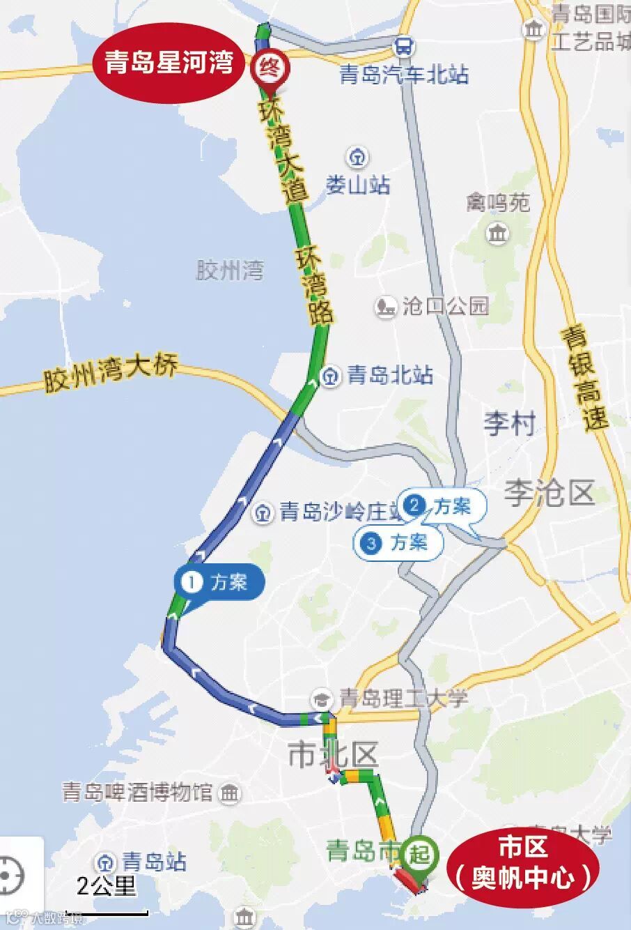 青银高速(机场方向)——双流高架路——双埠立交沿市区方向进入环湾大道