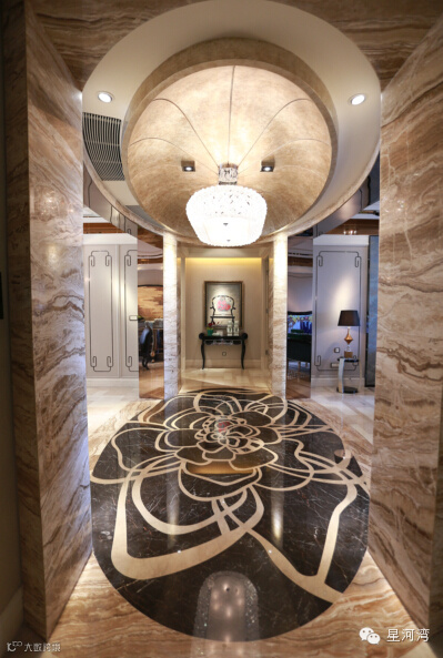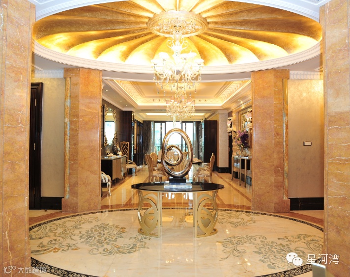 透过这一系列变化,依然可以真切感受到星河湾产品一脉相承的高品质住宅血统——那就是星河湾“舍得,用心,创新”的理念在每一细节的反映。比如精准到用激光笔都测量不到的施工误差,以及吊顶雕花装饰、金箔贴面穹顶、玉石拼花、定制设计软装等被视为星河湾产品标配的高端饰材;细节的完美更是一脉相承:水刀切割的拼花大理石浑然天成,像是在整片石材上印刷的图案……每一细节都在用鲜活的语言告诉你,没错,风格全新,产品升级,但依然还是那个坚守“舍得,用心,创新”企业精神的星河湾。