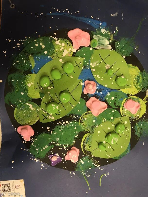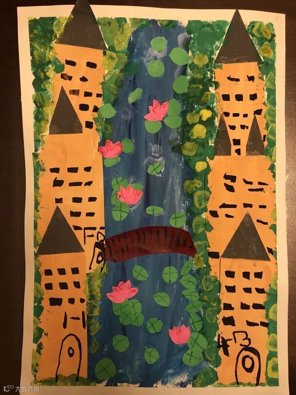 高蓉介绍说,孩子创作《奇妙的星河湾》的过程,好比沅缜把平日与家人们在星河湾园林中度过的休闲时光和感受用画笔描绘下来:“孩子先用水粉颜料大笔触绘制出一条河,接着用剪贴的方式制作了星河湾的房子、廊桥、荷花,用丰富的绿色笔触绘制出多层次的树木。”而画面中特别突出的星河湾标志性的尖顶和塔楼,则在沅缜年幼时就已深深印在他的脑海中。