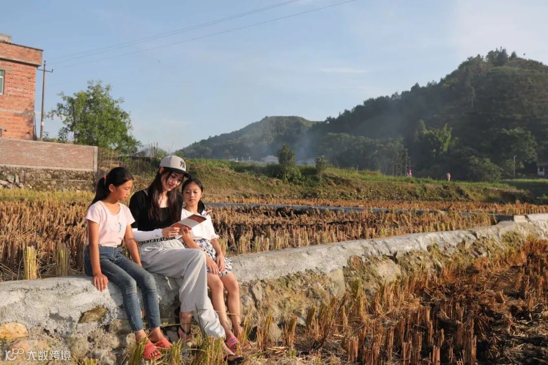 校旁浓密的香樟树下,田间收割余留的稻草香中,爱心业主代表赵静怡与刘雅柔,与孩子们细细品读文字,在阅读中,让心灵与心灵交流。