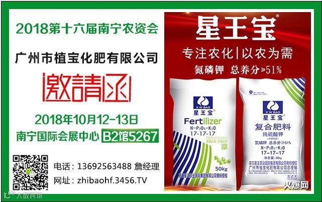 2018年10月12广州市植宝化肥有限公司与您相约南宁农博会,请及时关注展位号B2馆5267。星王宝不断给您带来惊喜!!!!