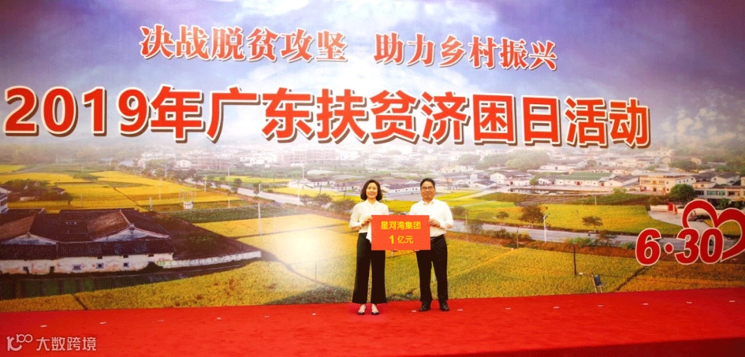 ▲ 黄健慧总裁在2019年广东扶贫济困日代表星河湾举牌捐赠