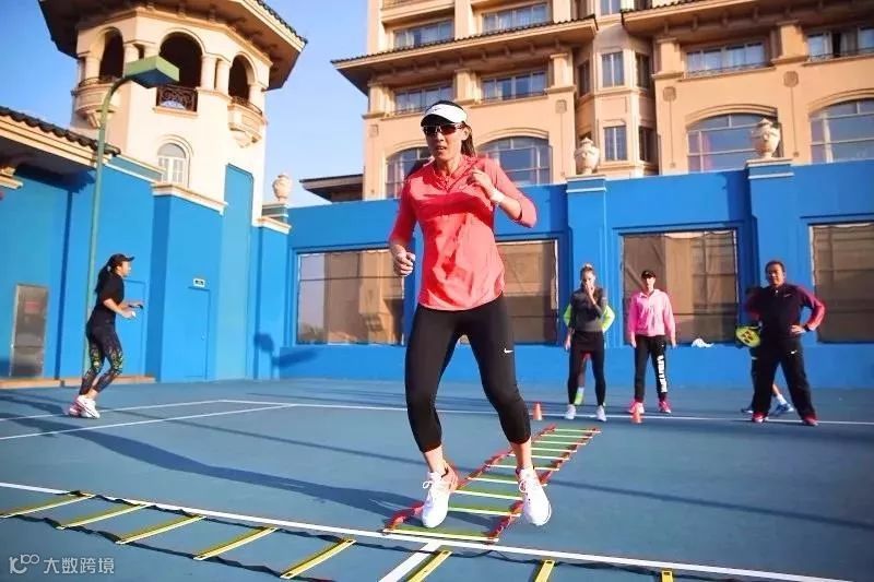 ▲郑赛赛在星河湾网球场训练中