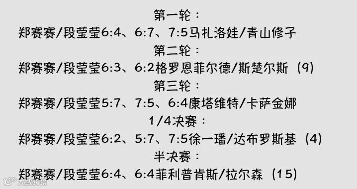 ▲郑赛赛/段莹莹的晋级之路