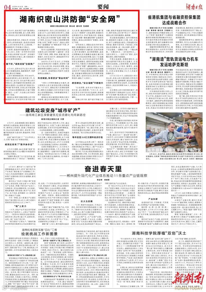 有科技助力,预警信息发布时效性提前、准确性提高。省市县三级均已实现从监测到预警的无缝衔接;雨前风险警示、雨中滚动警告、临灾转移警报,递进式预警模式及时提醒各地做好避灾转移;点对点发送短信预警,延长了应急避险反应时间。长沙市在全省率先开展数字孪生流域建设,浏阳河流域通过创建数字平台,可提前6天预测到较大洪水。