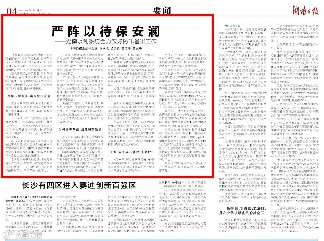 据气象预测,今年汛期,我省气候年景偏差,降雨时空分布不均,阶段性降雨集中且局地极端性强。全省水利系统强化职责担当,提前谋划,筑牢水旱灾害防御屏障,确保三湘安澜。