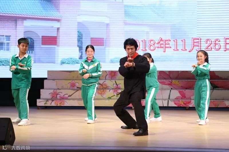 石先生现场指导同学们练起了武术招式,同学们模仿的津津有味。