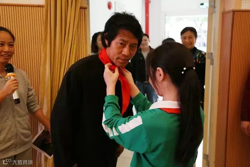 站如松,行如风,李小龙扮演者石天龙先生一进场,全场响起了热烈的掌声。星执少先队员代表为他佩戴了鲜艳的红领巾。