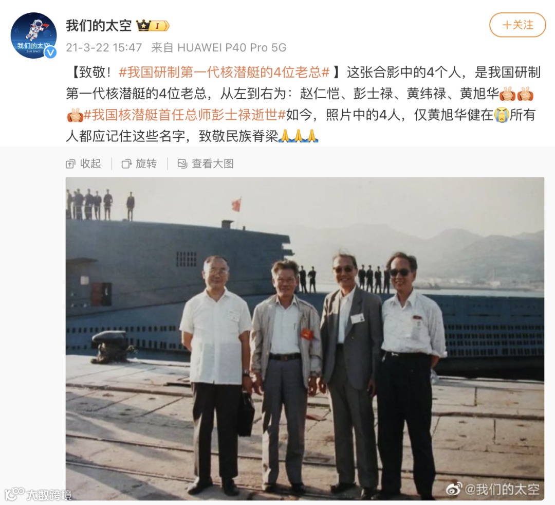 作为中国第一代核潜艇总设计师,黄旭华为核潜艇研制和跨越式发展作出巨大贡献。