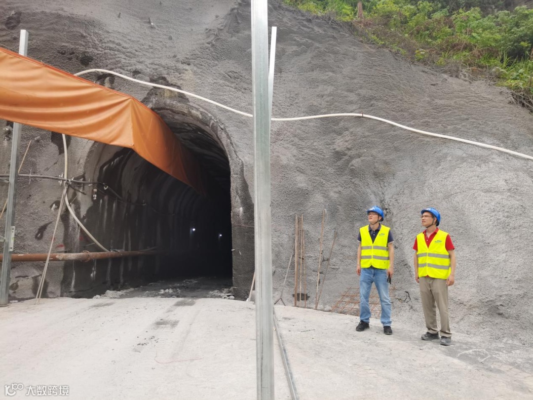 右图:监理人员对隧洞安全防护棚安装及施工安全检查。