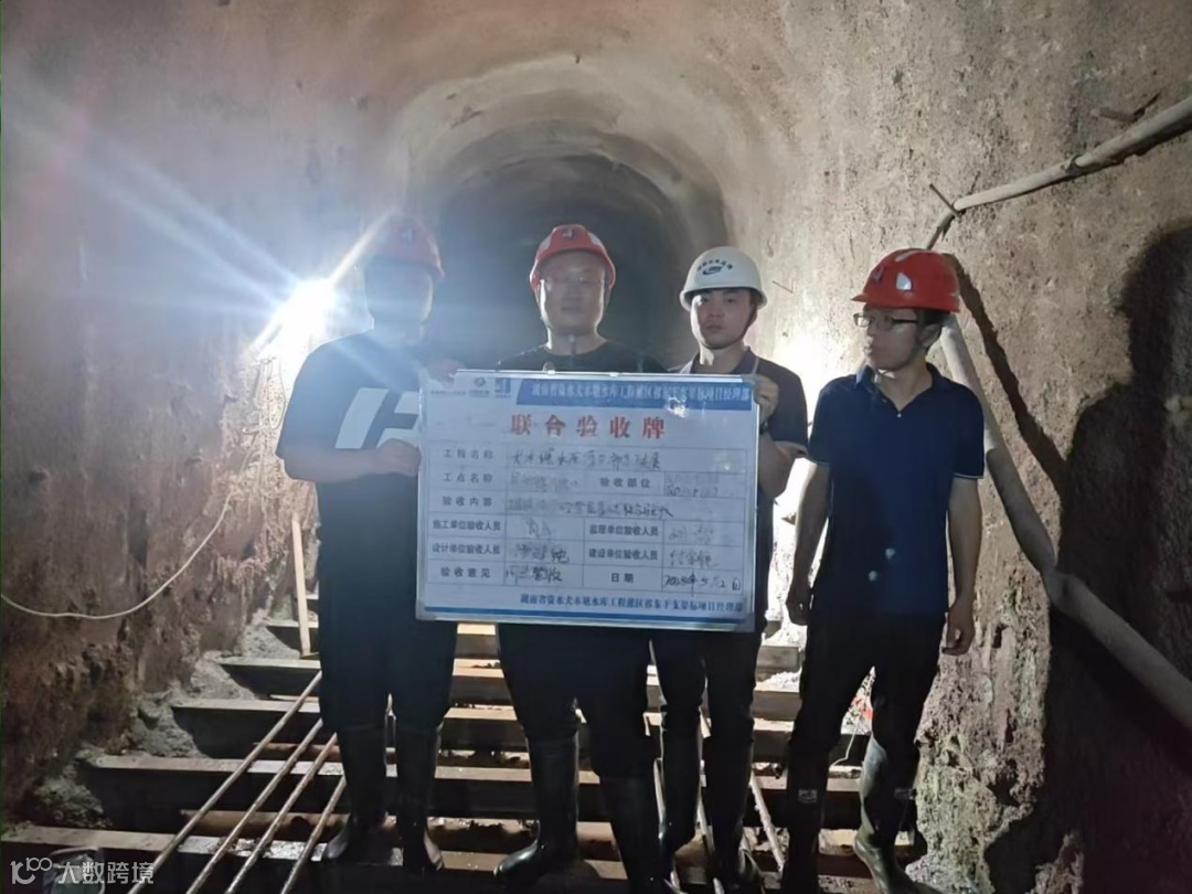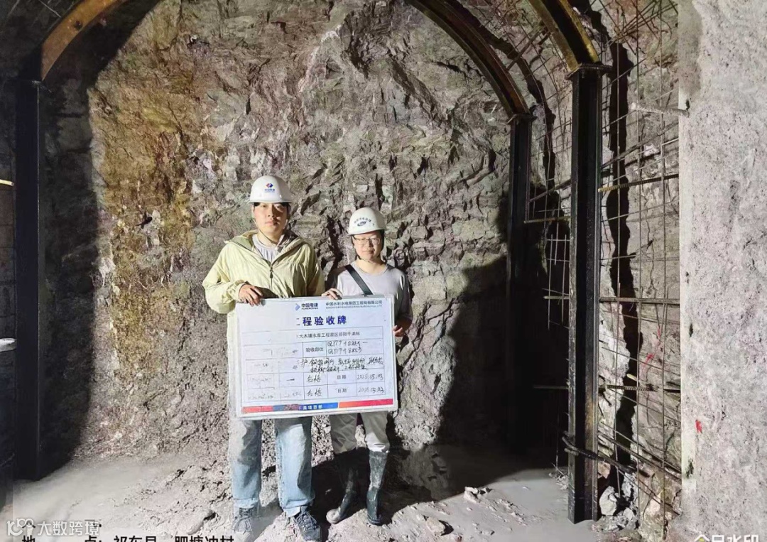 左图:监理员刘一能在寨脚隧洞与参建四方联合验收基础面。