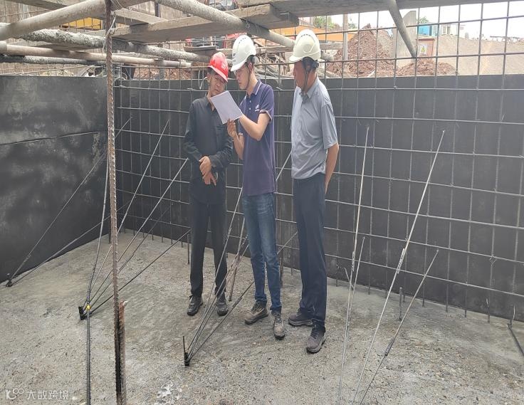 右图:监理工程师高超与业主、施工单位联合对祁阳标进行质量检查。