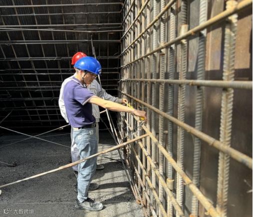 左图:监理人员对大坝钢筋制安质量进行检查。
