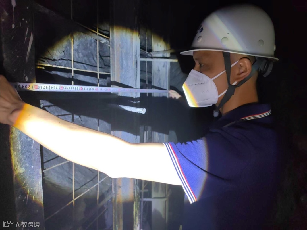 左图:监理员李陆雄在合台岭隧洞验收拱架、锚杆。