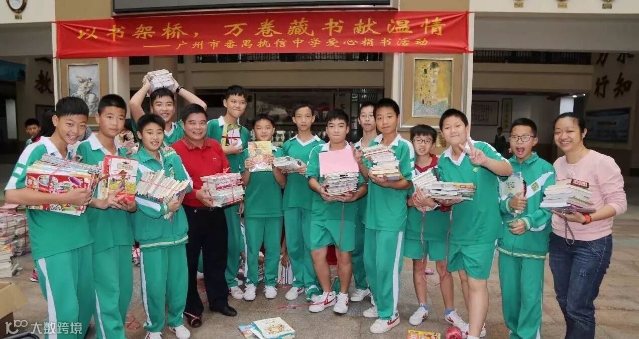 星河湾番禺执信中学的同学们也以书架桥,帮助新疆喀什市疏附县开辟知识的海洋。