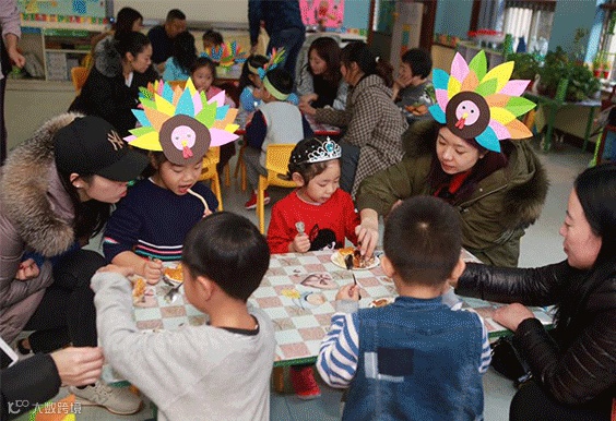 在北京星河湾德福双语幼儿园,感恩教育温情脉脉的进行着:孩子们同家长一起倾听机器人“小胖”讲述感恩节的故事,家长们在卡片上写下寄语卡片挂在许愿树上……