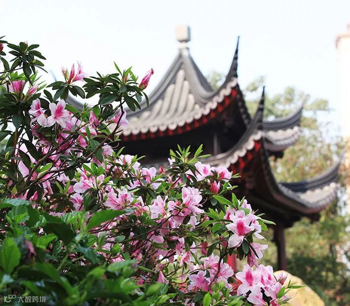 “亭台古韵处,百花绕阶石。”春赏了一度,身体难免疲乏,又不愿早早离去,大可上绿荫中间的青瓦红亭,稍作歇息。如若恰逢金邻,大可聚首谈笑风生一番。