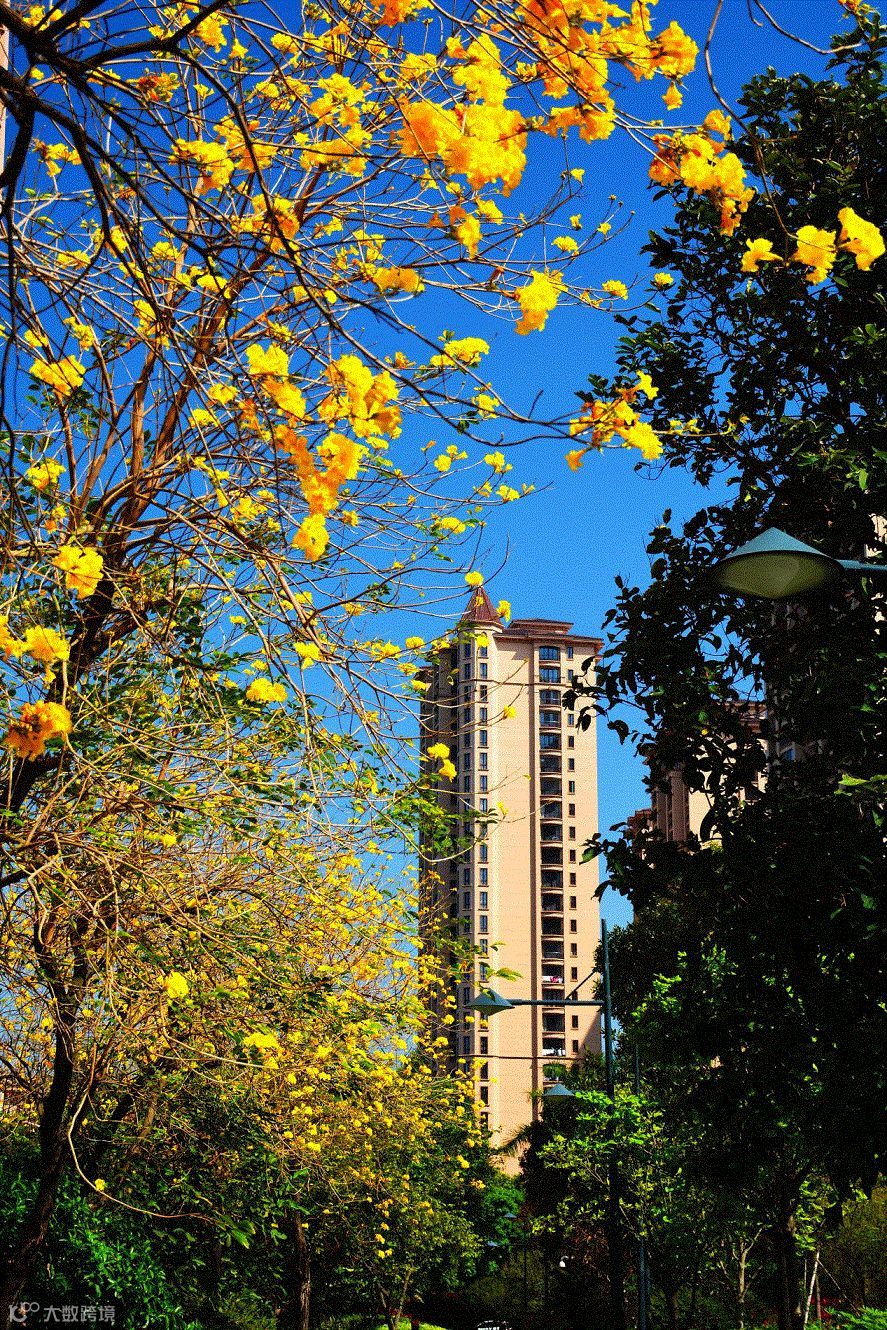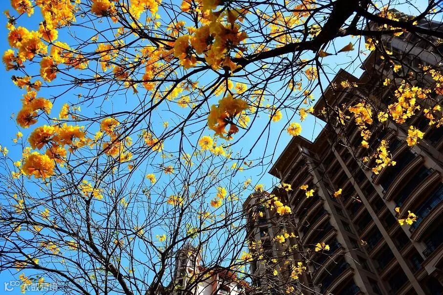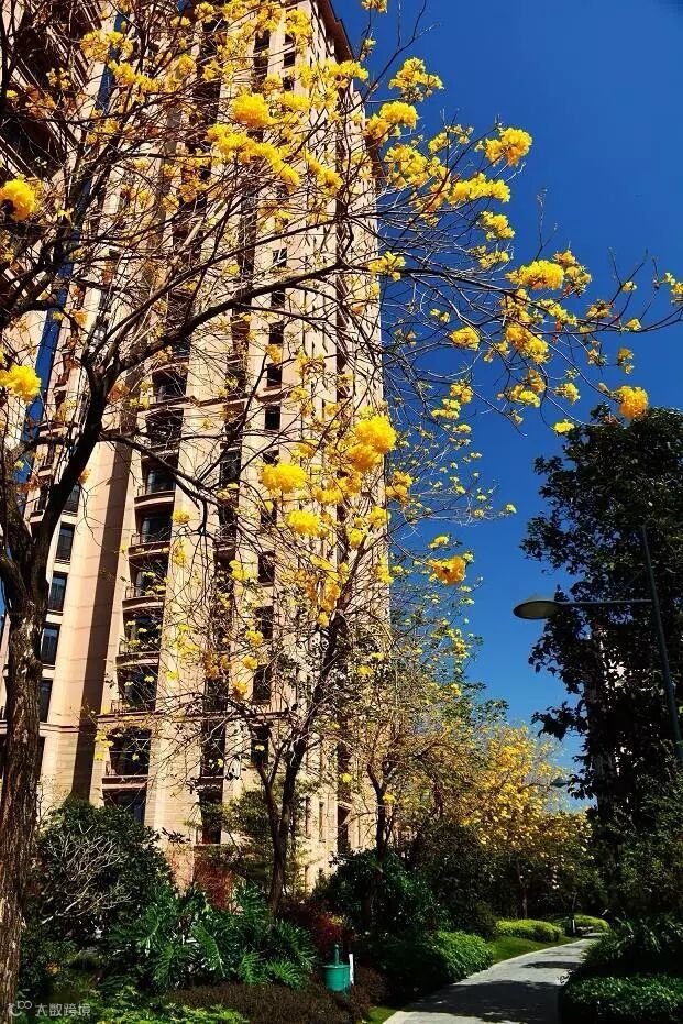 黄花风铃木的花朵开遍枝桠,一直延向那绿意盎然的小径深幽处。身临其间,心头满满的爱意不由得荡漾开来,如小桨划船般此起彼伏。