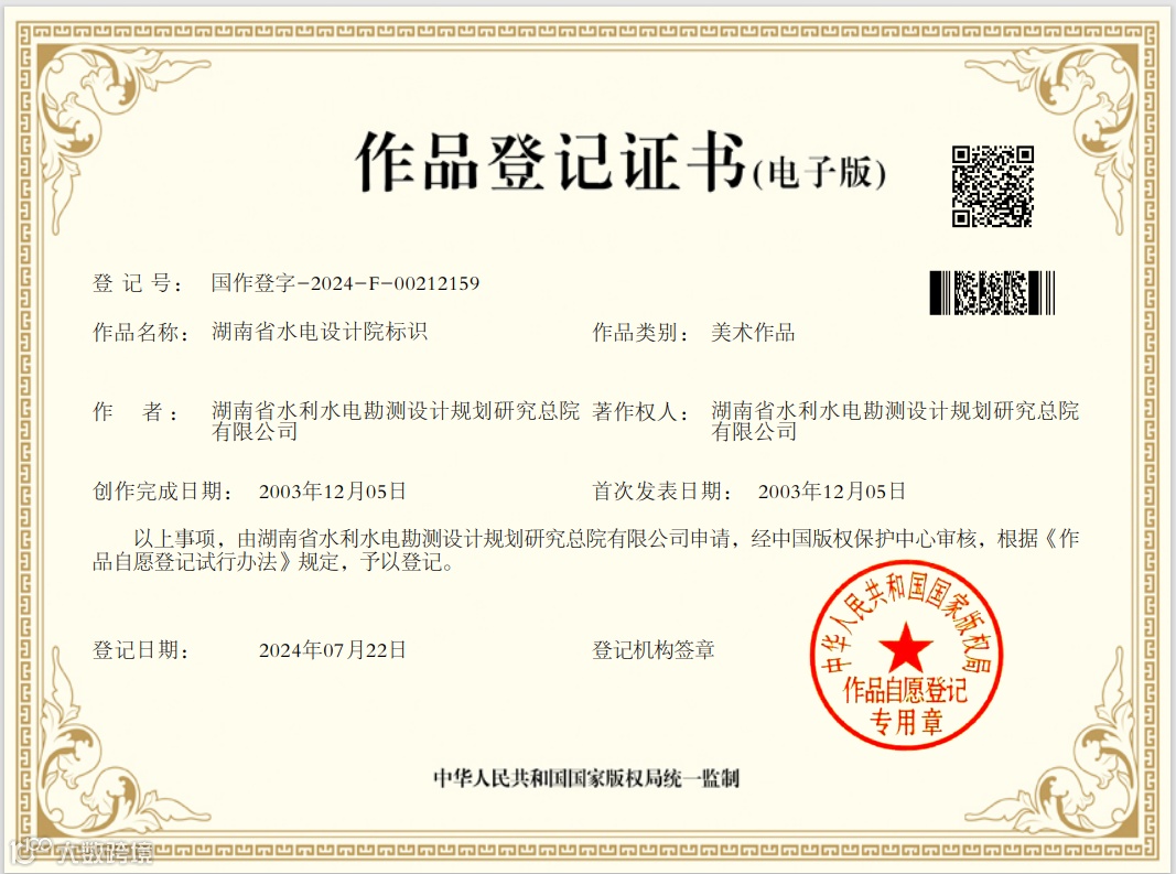 近日,经过数月的申请,湖南省水电设计院标识成功取得国家
