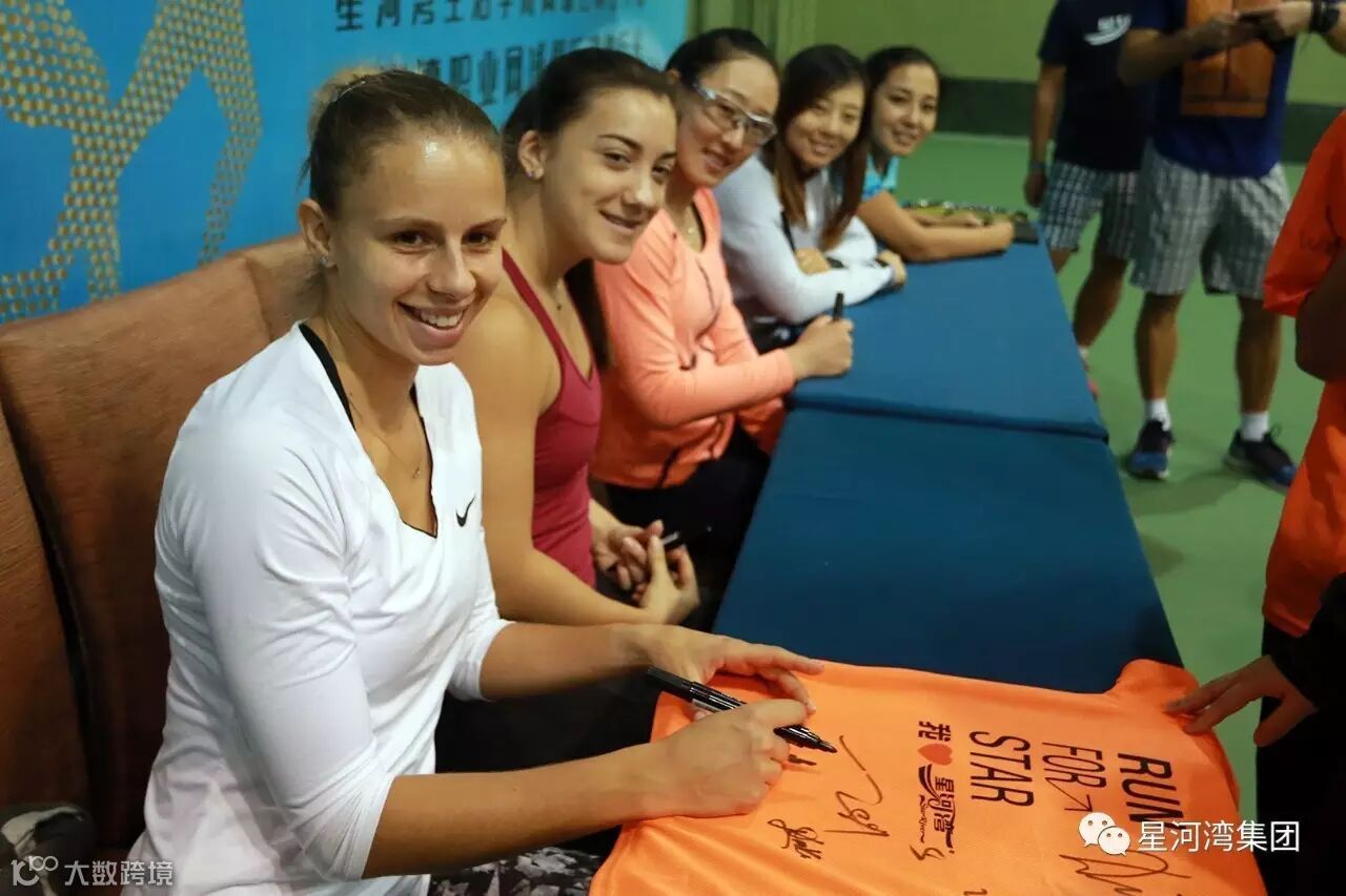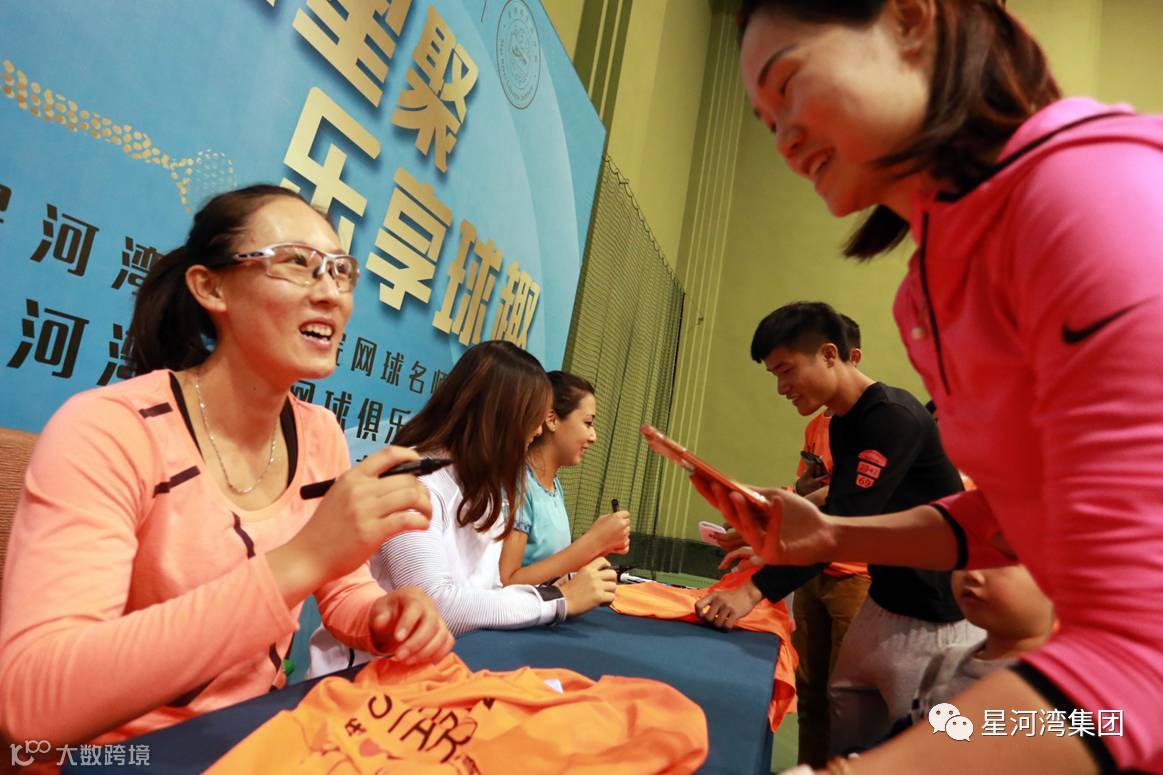 星河湾职业网球俱乐部派出教练和球员12人,与球迷一起交流。