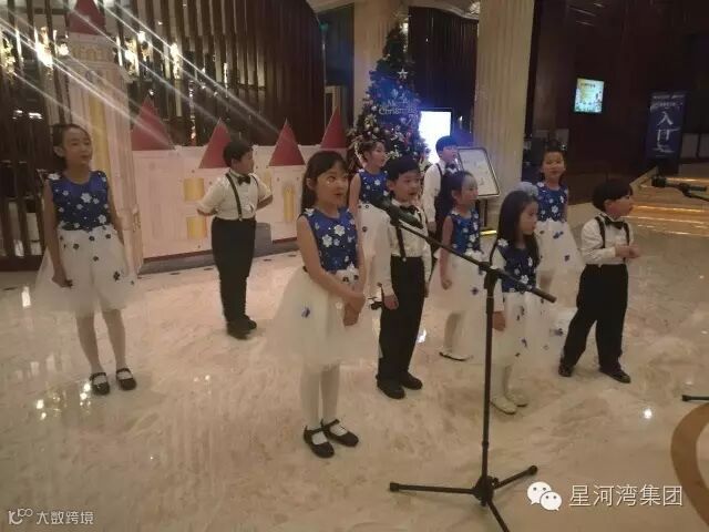 在独特的奇幻城堡和缤纷多彩的圣诞树装饰下,由商业街商户菟菟芭蕾的十名活波可爱的小朋友,组成的唱诗班为大家演唱歌曲,清新悦耳的歌声飘散到酒店大堂各处。