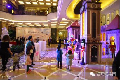 当晚的广州星河湾酒店大堂流光溢彩,绚丽夺目。城堡元素与圣诞巧妙融合的装饰,让现场宛如一个奇幻城堡。