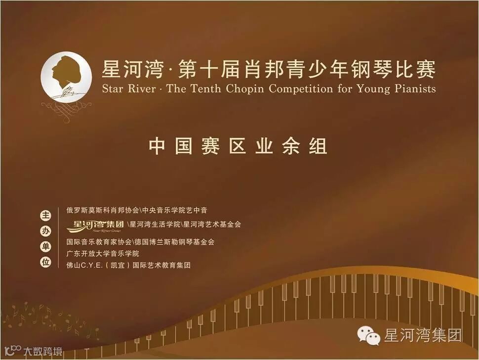 作为享誉全球的青少年音乐家们的比赛——肖邦青少年钢琴比赛,一直被业界称为青少年专业钢琴比赛中的“奥林匹克”。比赛历史悠久,至今已成功举办了九届。这个夏天,星河湾·第十届肖邦青少年钢琴比赛中国赛区业余组,即日起(2016年7月8号截止)开始正式接受报名。本次比赛将在全国多个省市设立赛区,总决赛设立于广州星河湾半岛。比赛分为两个阶段,省市赛区选拔赛→全国总决赛(总决赛分半决赛与决赛两轮进行)。