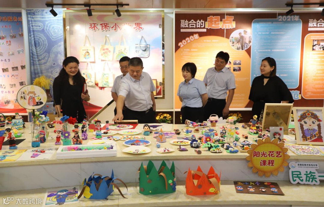 任慧校长(左一)介绍学校融合课程学生作品。