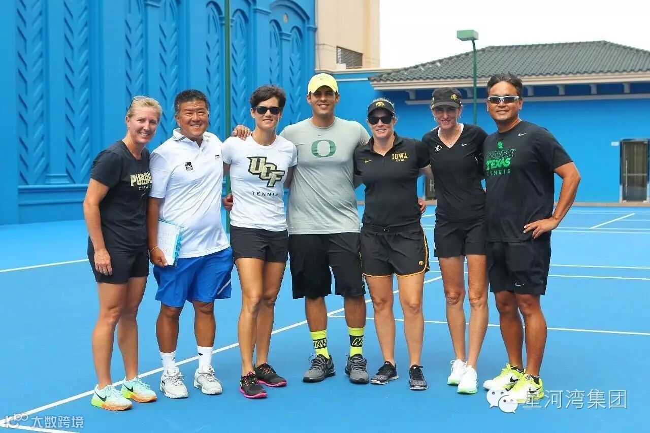 星河湾职业网球俱乐部执行长马伟开(左二)与美国各大名校的网球主教练们